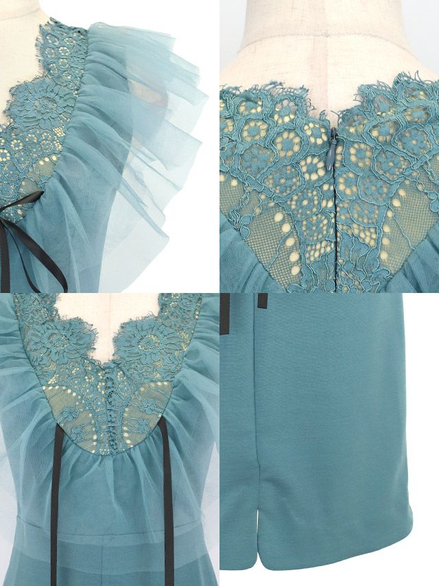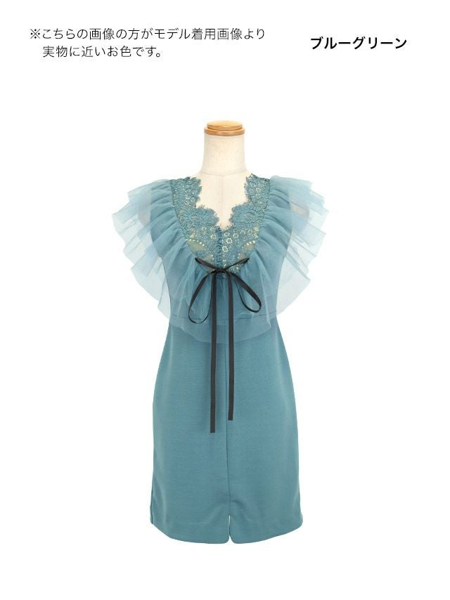 レース ノースリーブ ボリュームチュールフリル リボン ストレッチ タイトミニドレスのイメージ画像4
