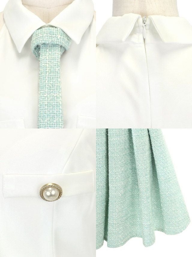 4. [SALE] ワンピース Aライン ミニドレス 大人 上品 ハイネック ツイード 襟付き ボウタイ アメリカンスリーブ 胸元カバー 同伴 キャバドレス (横田未来着用)