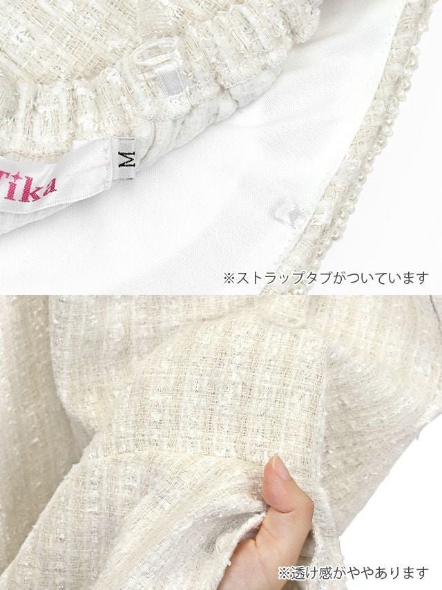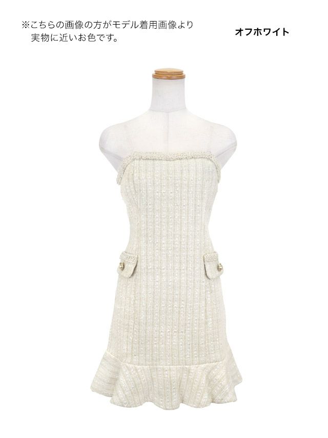 4. タイト ミニドレス 上品 ツイード 裾フリル ベア パール フェイクポケット キャバドレス (若林萌々着用)
