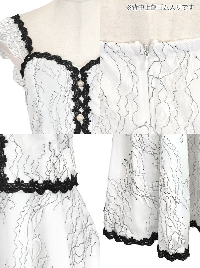 キャミソールモノトーンフェミニン刺繍フレアミニドレスの商品詳細1