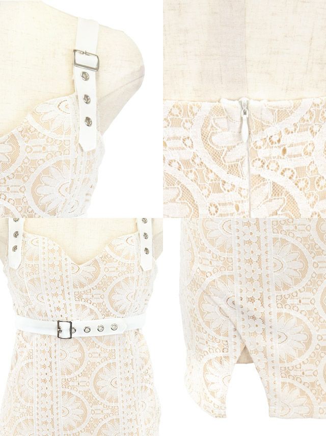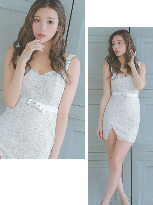 キャミソールウエストベルトヌーディーレースストレッチスリットタイトミニドレスの商品詳細1