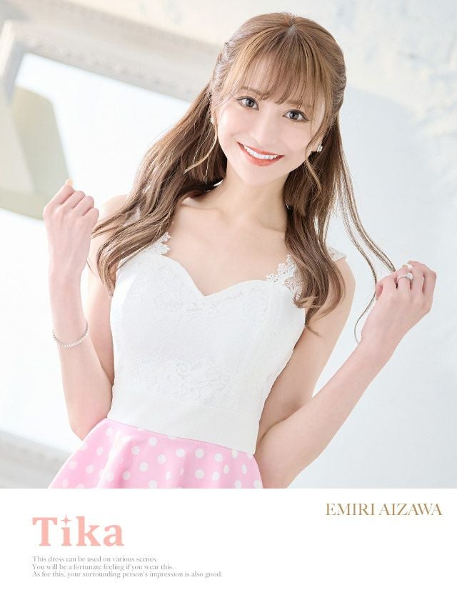 ドレス キャバ キャバクラ キャバ嬢 キャバドレス ミニドレス ペプラム 可愛い 綺麗 フェミニン ガーリー ドット柄 ノースリーブドレス フラワーレース Tika ティカ レースノースリーブハートカットペプラム切替ドットタイトミニドレス