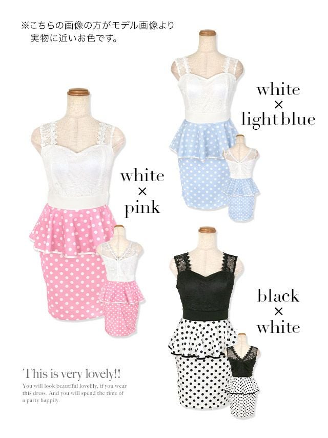 レースノースリーブハートカットペプラム切替ドットタイトミニドレスのカラーバリエーション