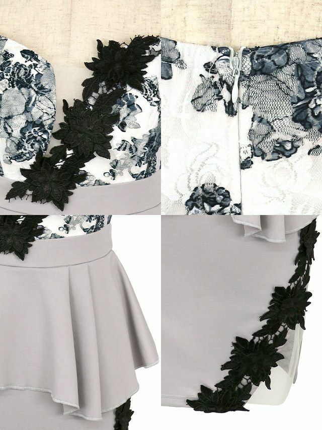 オフショルダー 立体フラワーレース ペプラム バストシースルー 谷間魅せ タイトミニドレスの商品特徴 オフショルダー 立体フラワーレース ペプラム バストシースルー 谷間魅せ タイトミニドレスの商品詳細1
