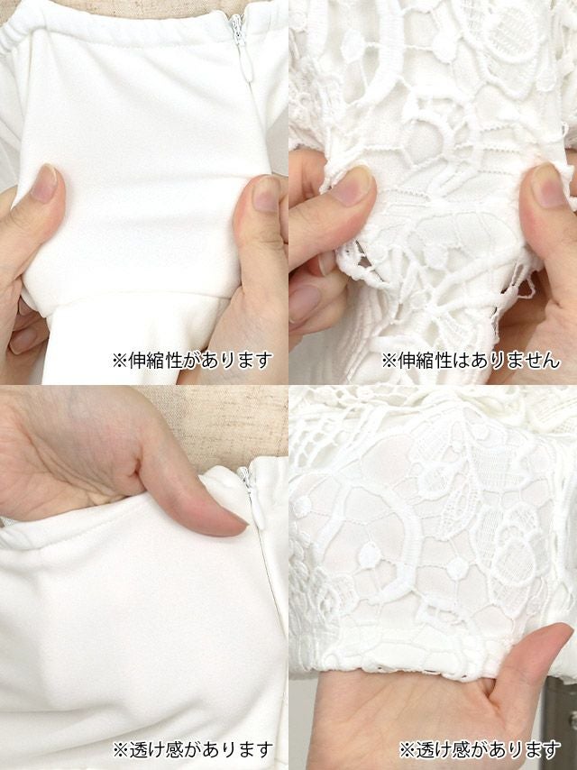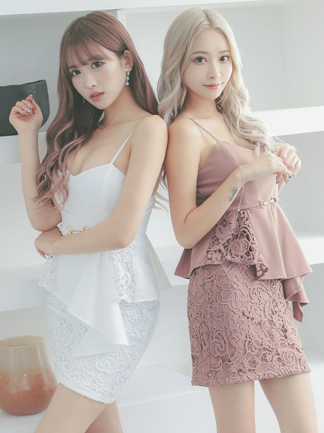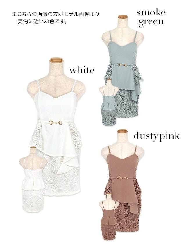 細ベルト付きアシメペプラムキャミソール立体ケミカルレースタイトミニドレスのカラーバリエーション