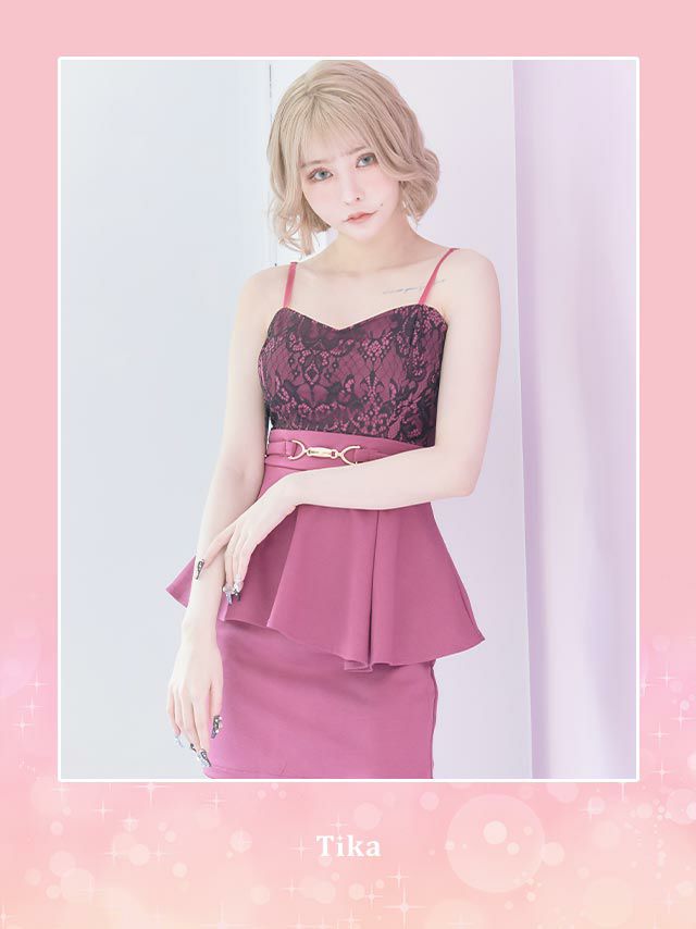 キャバドレス ミニ丈 大きいサイズ 体型カバー キャバクラ Tika ティカ ブラックレースキャミソールペプラムベルト切り替えストレッチタイトミニドレス