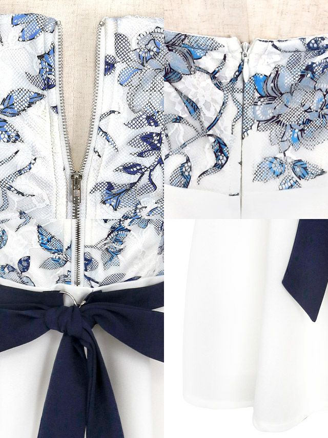 フェミニンフラワーレースキャミソールジップウエストベリボン付きフレアミニドレスの商品詳細1