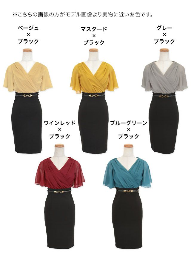 半袖シフォンカシュクールウエストベルト膝丈タイトドレスのカラーバリエーション