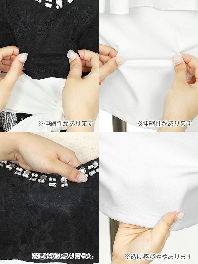 ノースリーブビジューウエストリボンペプラムレース切り替えタイトミニドレス の商品特徴