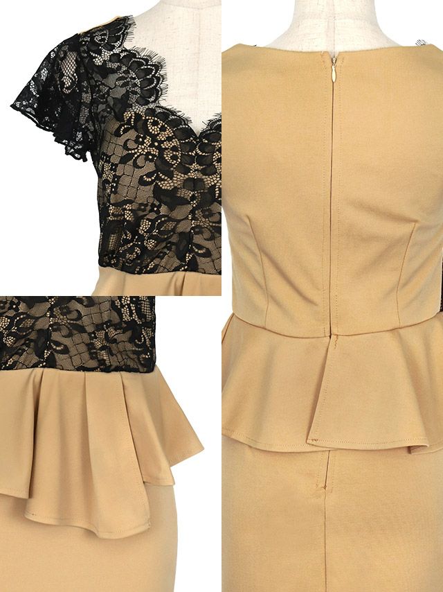 フリル袖ブラックレース切替アシメペプラム半袖タイトミニドレスの商品詳細1