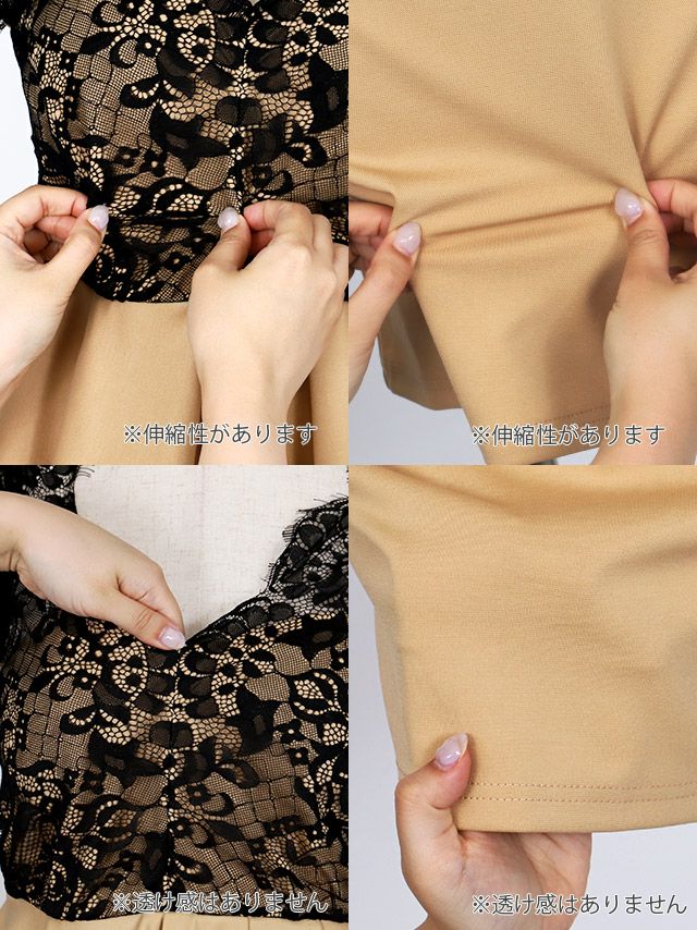 フリル袖ブラックレース切替アシメペプラム半袖タイトミニドレスの商品特徴