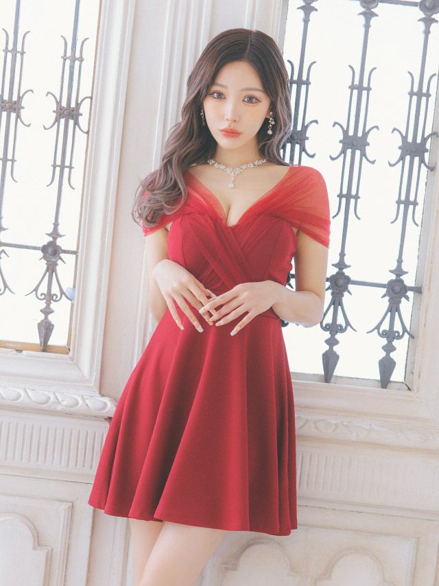 5. [SALE] シアー半袖スリーブワンカラーフレアミニドレス (Sサイズ~Lサイズ) (重川茉弥/キャバドレス着用)