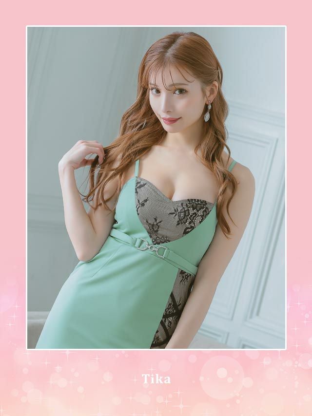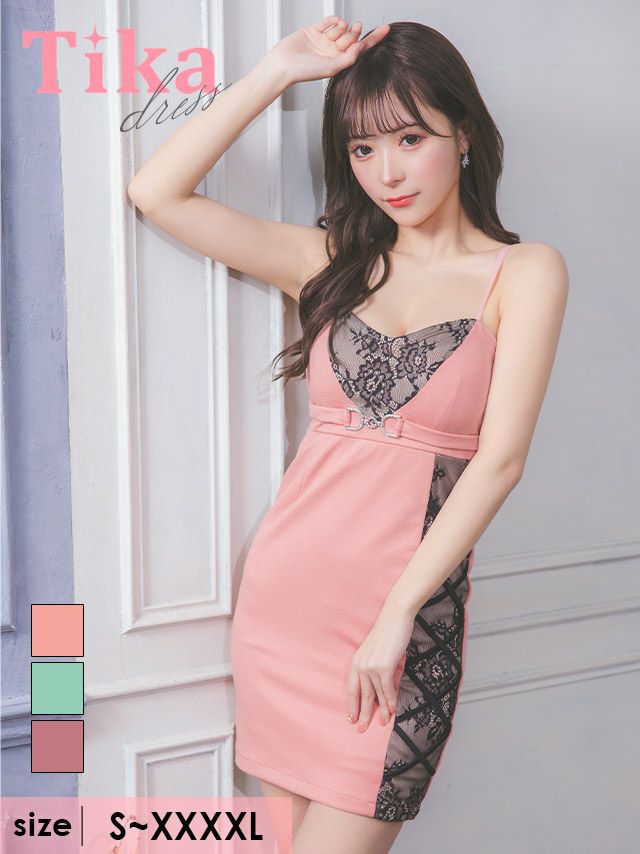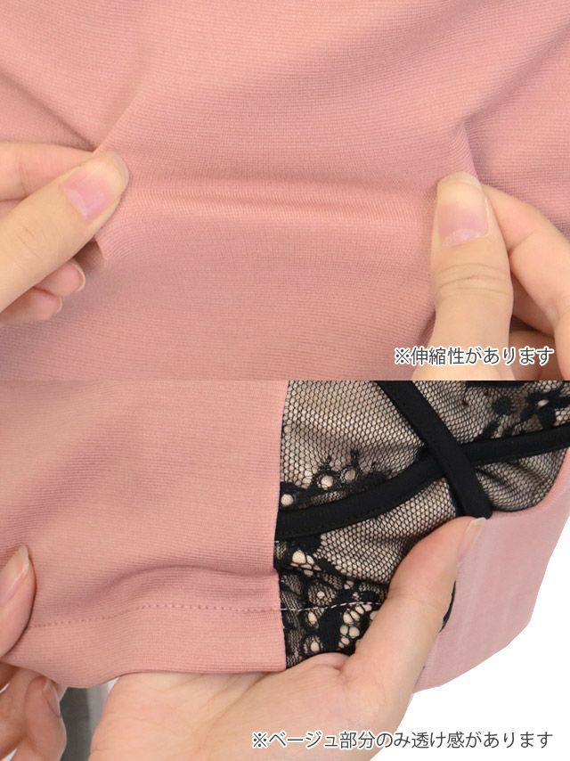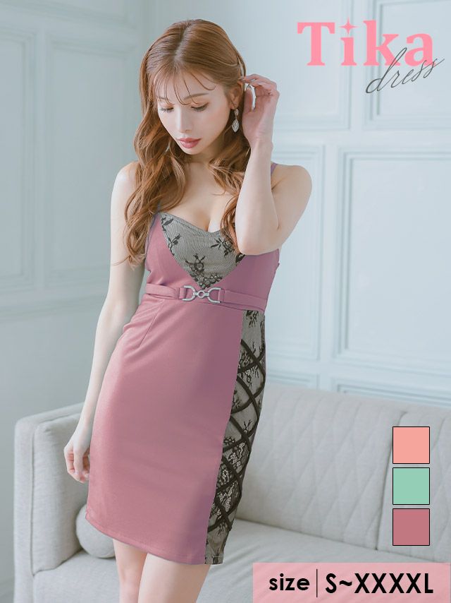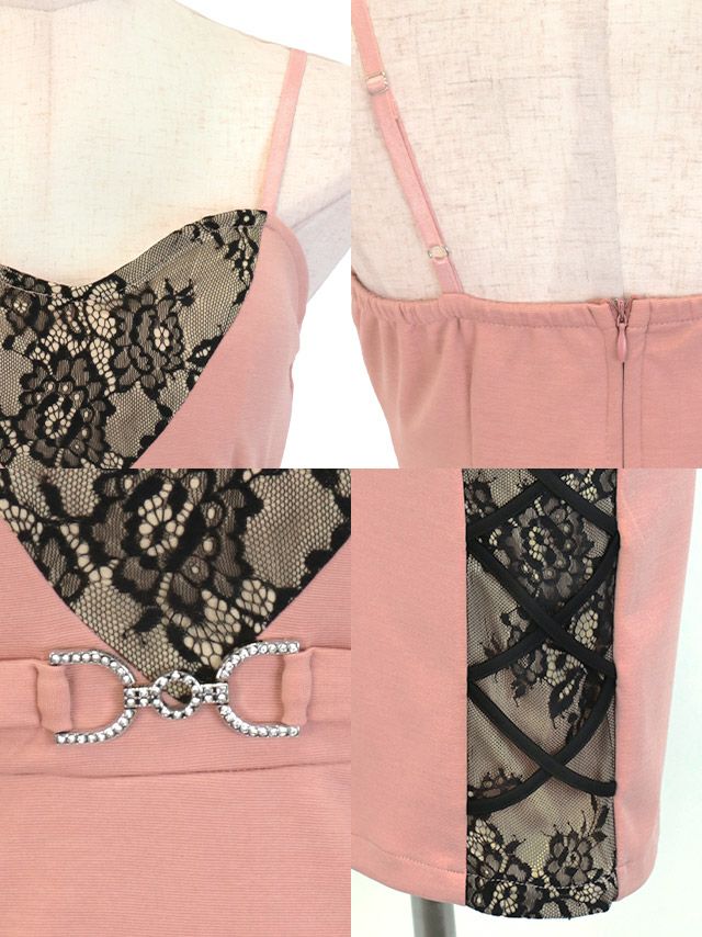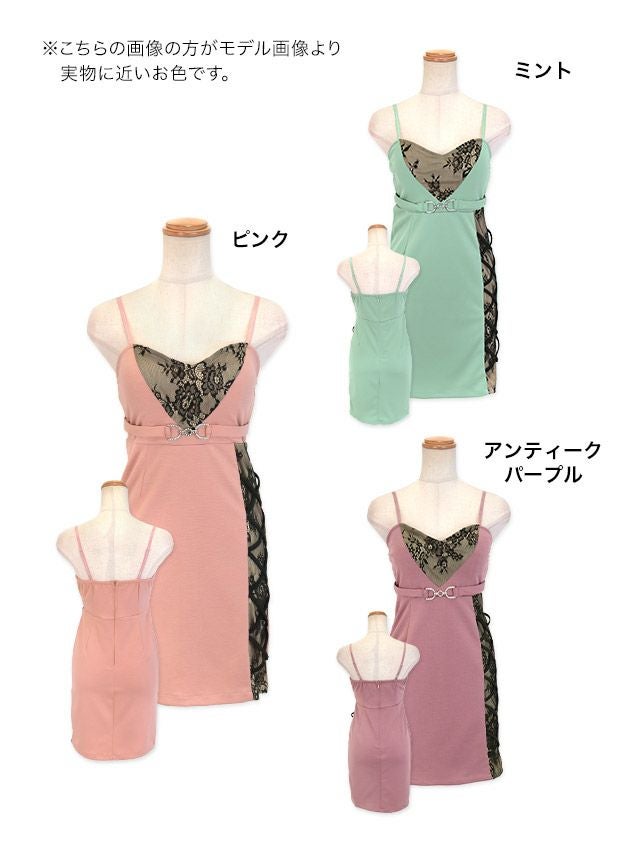 キャミソールヌーディーブラックレース切り替えウエストベルトタイトミニドレスのカラーバリエーション