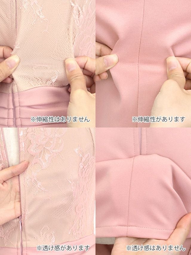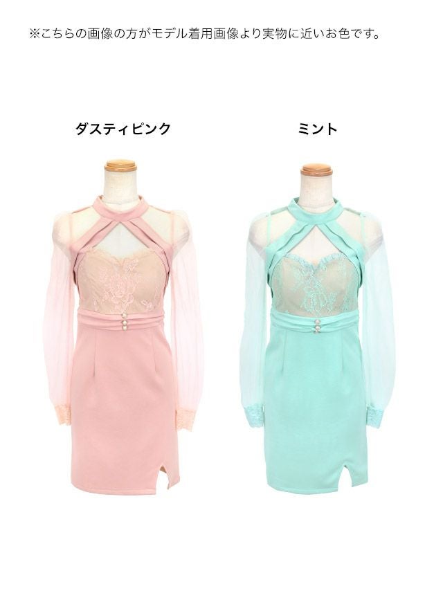 シアー長袖バストカットレース切り替えサイドスリットタイトミニドレスのカラーバリエーション