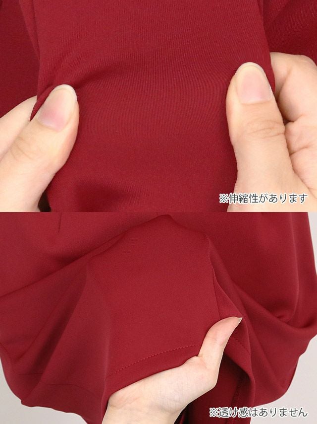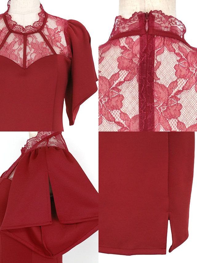 ハイネックフラワーレース切替半袖ペタルスリーブサイドスリットタイトミニドレスの商品詳細2