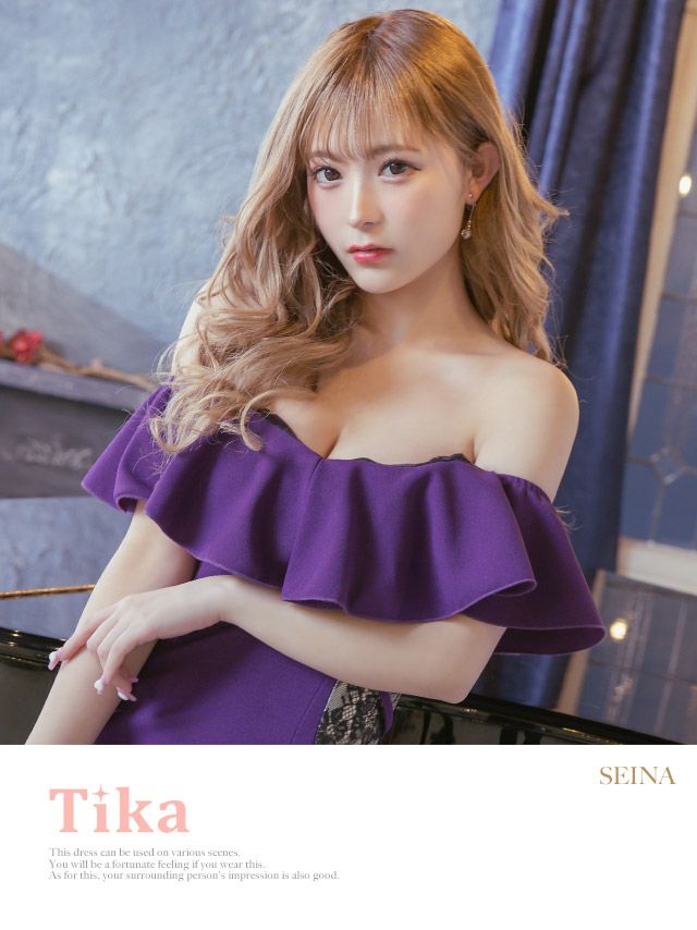 キャバドレス ミニ丈 セクシー キャバクラ クラブ ラウンジ スナック Tika ティカ オフショルダー胸元フリルサイドチュールクロスデザイン切替タイトミニドレス