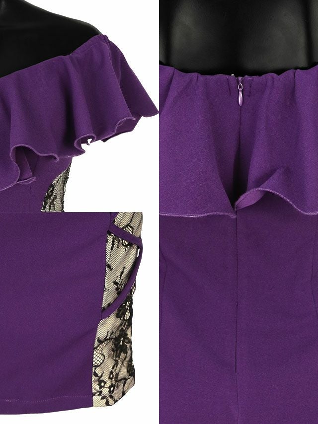 オフショルダー胸元フリルサイドチュールクロスデザイン切替タイトミニドレスの商品詳細1
