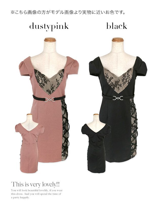 ハートカットヌーディーフラワーサイドクロス切替ベルト付き半袖タイトミニドレスのカラーバリエーション