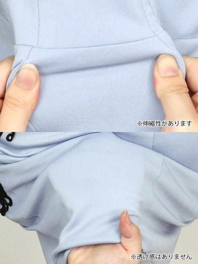 長袖シアーパフスリーブ切替フロントジップフラワー刺繍くびれタイトミニドレスの商品詳細2