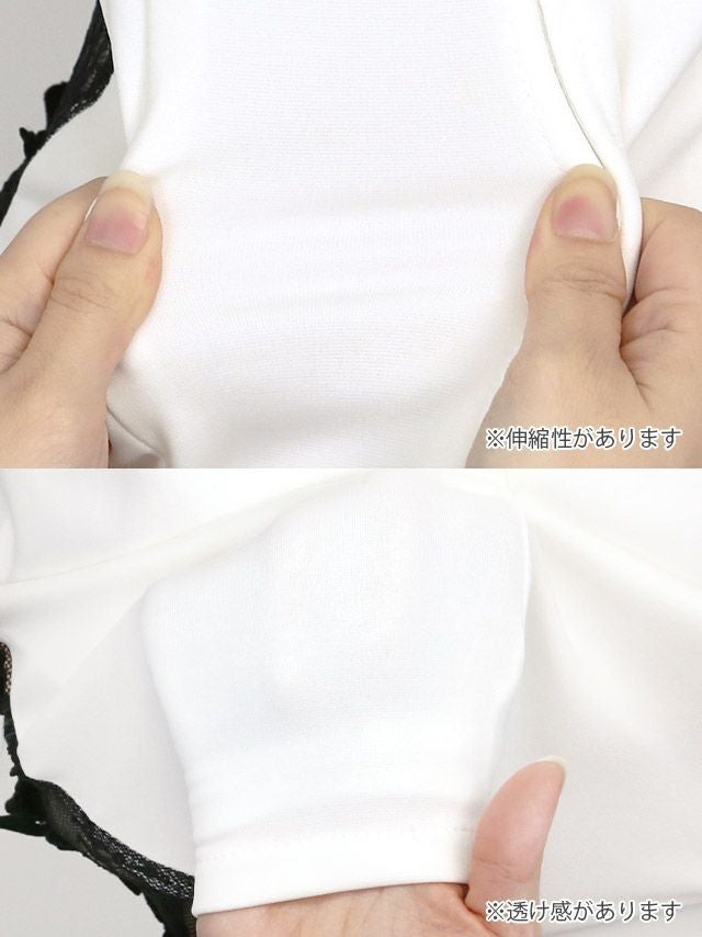 チョーカーネックアシメスリーブ立体フラワーレースビジュー切替タイトミニドレスの商品詳細2