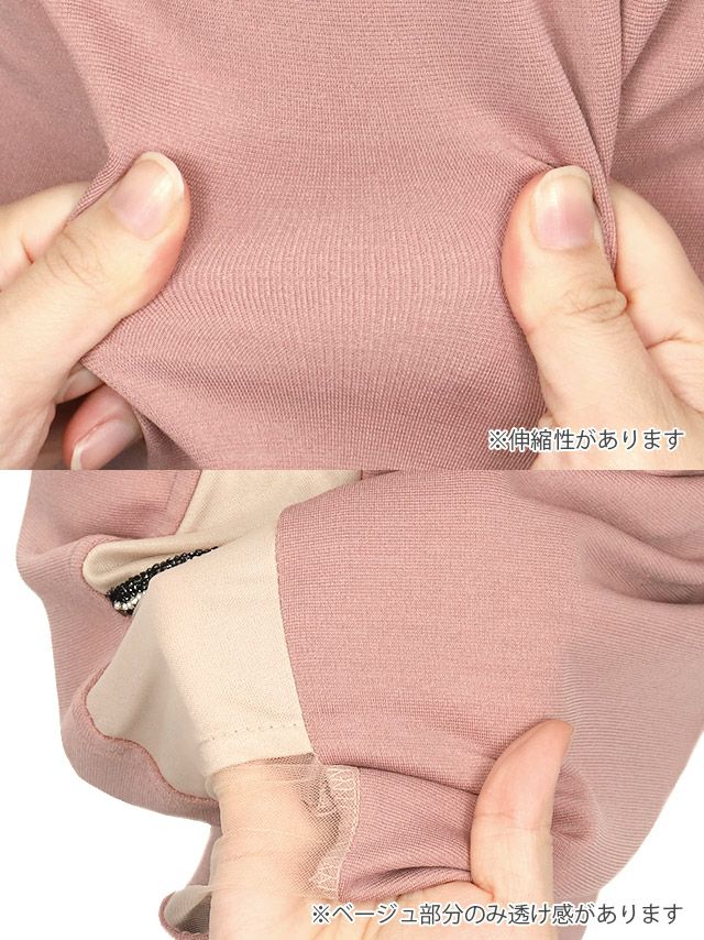 ビジューチョーカーネックバストフロントジップサイドヌーディーカラー切替長袖タイトミニドレスのカラーバリエーション