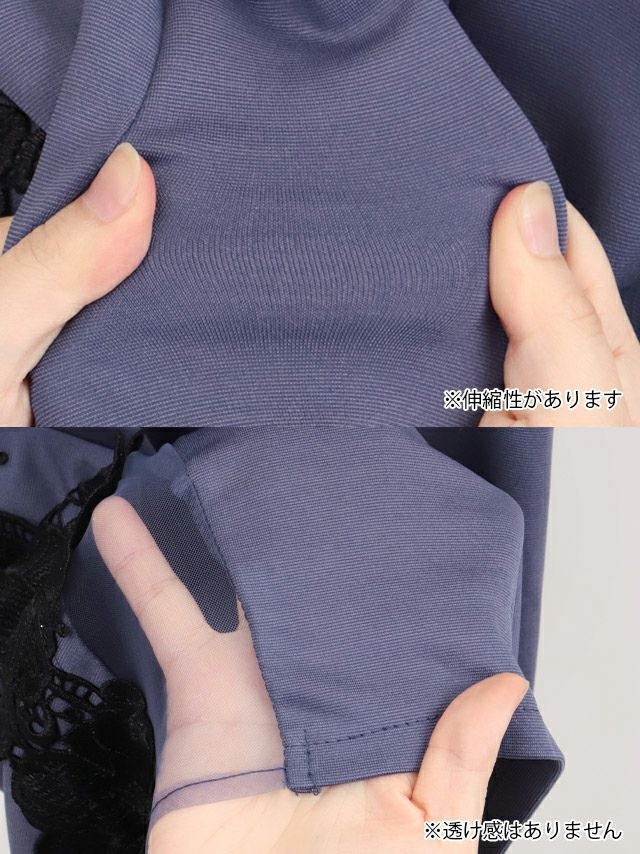 肩あきバストジップサイドブラックフラワー刺繍くびれタイトミニドレスのイメージ画像3
