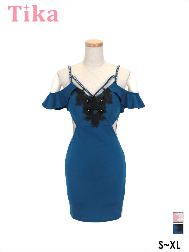 ビジュー付き肩あきショルダーフラワー刺繍シアーびれタイトミニドレスのカラーバリエーション