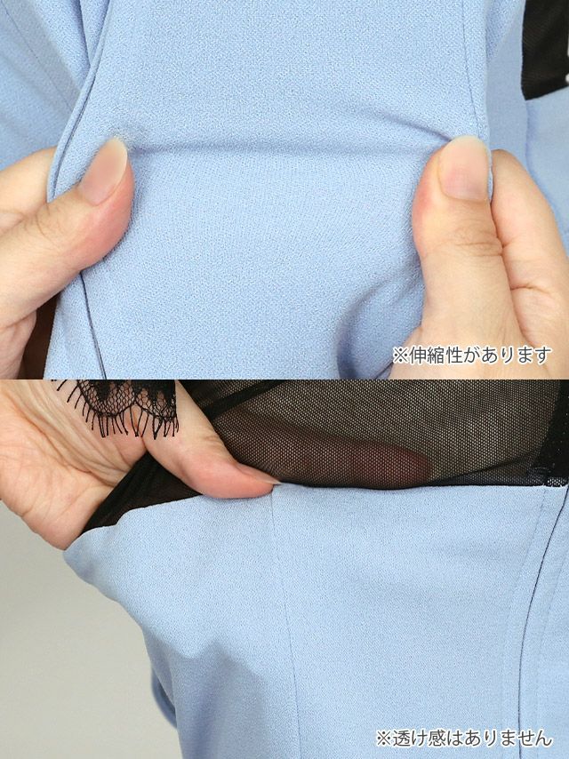 ハイネック半袖レースシアーくびれ切り替え編み上げラップタイトミニドレスの商品詳細2
