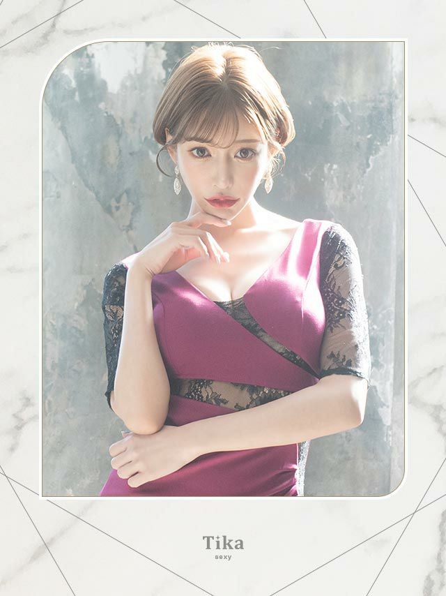 5. フラワーレースサイドヌーディー切替袖ありタイトミニドレス (Sサイズ~Lサイズ) (明日花キララ/キャバドレス着用)