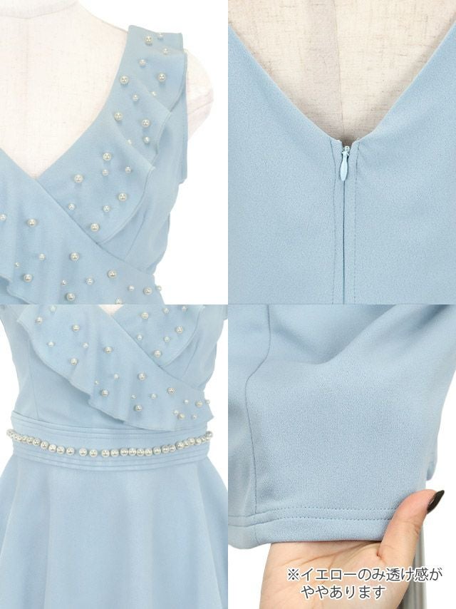 ノースリーブVネックホワイトパール胸元フリルペプラムタイトミニドレスのカラーバリエーション