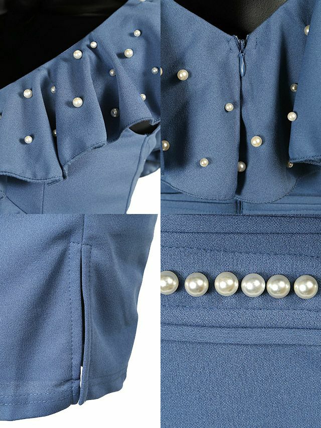 4. 胸元フリル袖ウエストパール付Vネックコクーンミニドレス (Sサイズ~Lサイズ) (さくりな/キャバドレス着用)