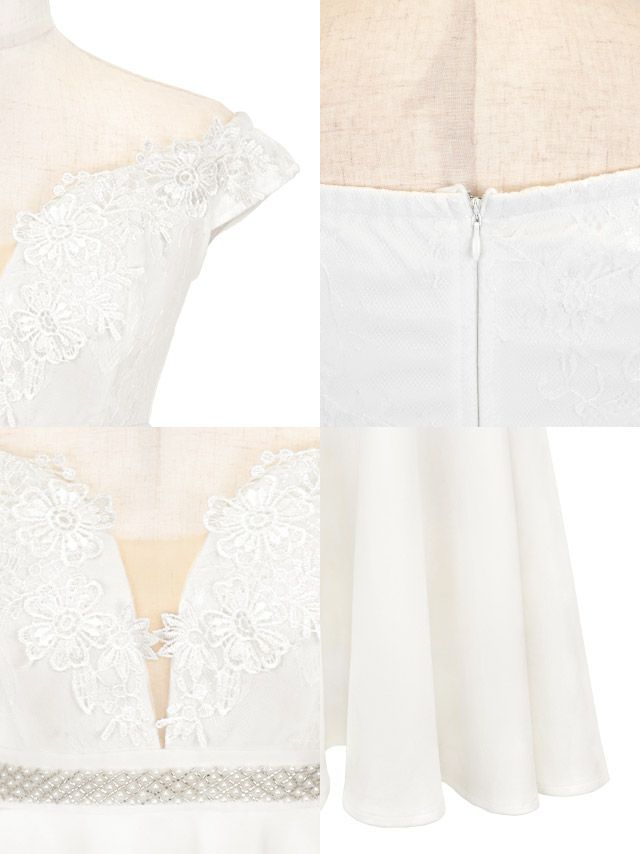 フラワー刺繍ウエストビジューオフショルダーフレアミニドレスの商品詳細1
