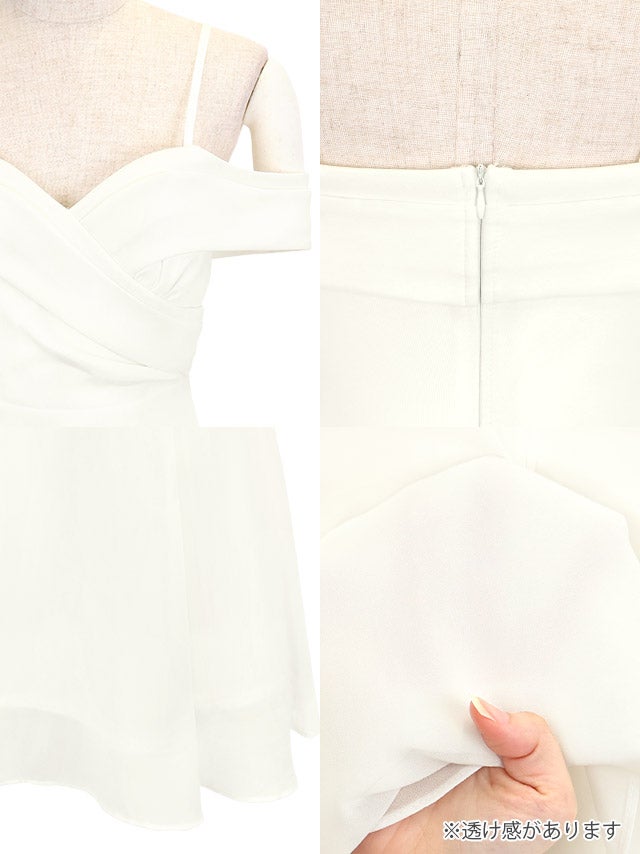 ミニドレス 肩あき シフォン谷間 バストクロス Aライン ワンカラー XL XXL 4L 5L 大きいサイズ 白 キャバドレスの商品特徴1