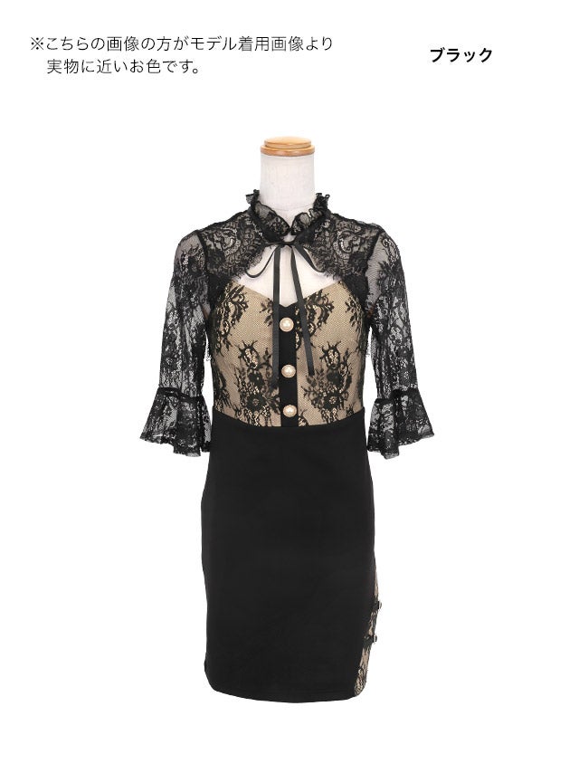 ミニドレス タイト バストカット ネックリボン フラワーレース 袖あり 二の腕カバー 黒 XL XXL キャバドレスのカラーバリエーション