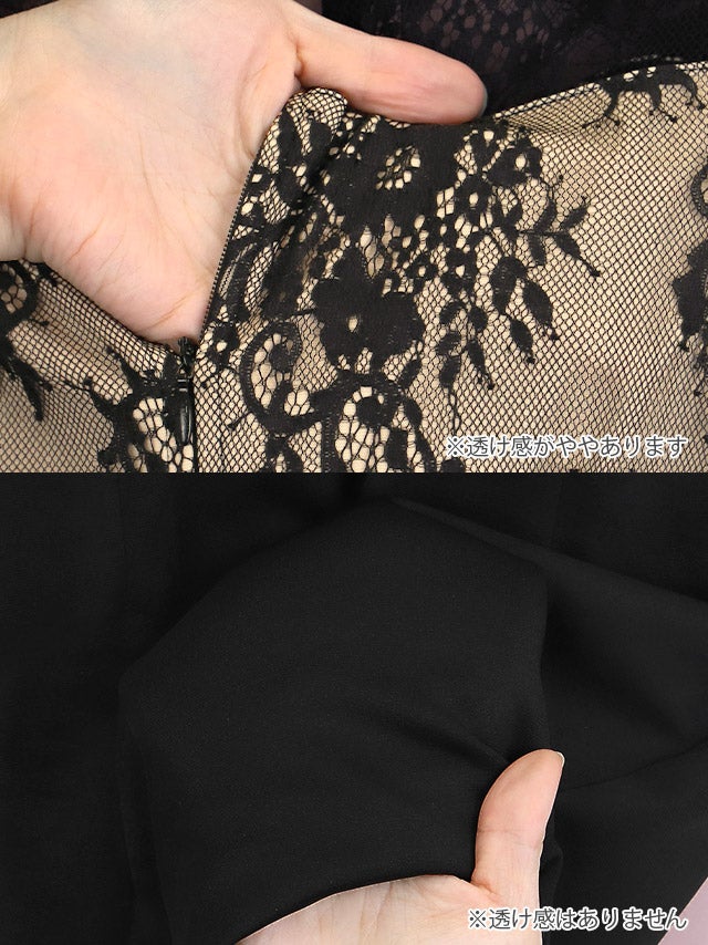 5. ミニドレス タイト バストカット ネックリボン フラワーレース 袖あり 二の腕カバー 黒 XL XXL キャバドレス (聖菜着用) [tk-md25154]