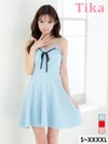 Aライン ミニドレス 大きいサイズ ストレッチ キャミソール チュールフリル リボン キャバドレスのスペック表