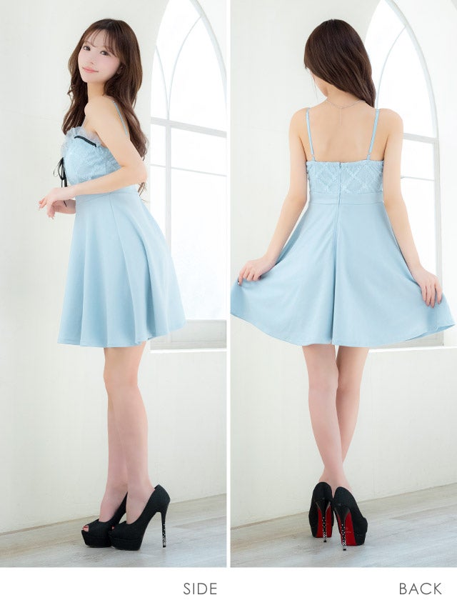 Aライン ミニドレス 大きいサイズ ストレッチ キャミソール チュールフリル リボン キャバドレスのカラーバリエーション
