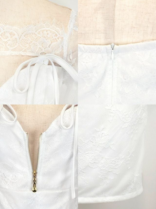 オフショルダー袖ありレースバストカットジップ総レースタイトミニドレスの商品詳細1