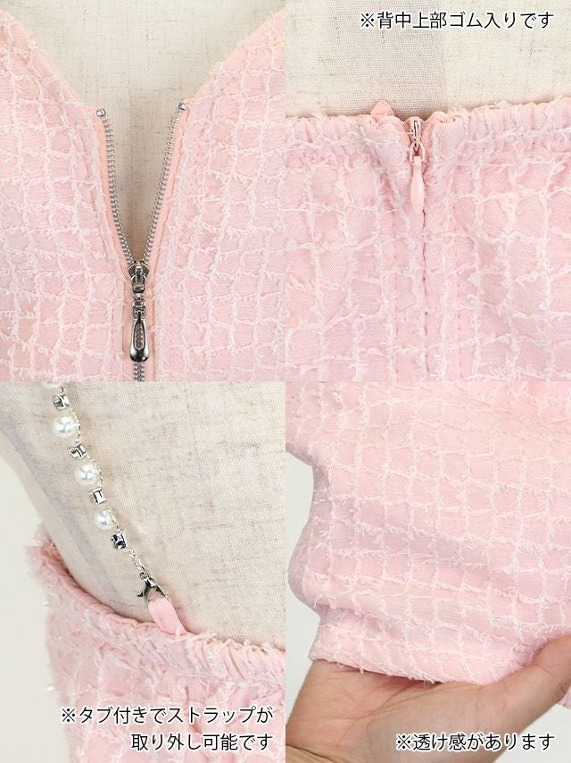 パールビジュー キャミソール ハートカット バストジップ 谷間見せ ウエストベルト ツイード パステル タイトミニドレスの商品特徴