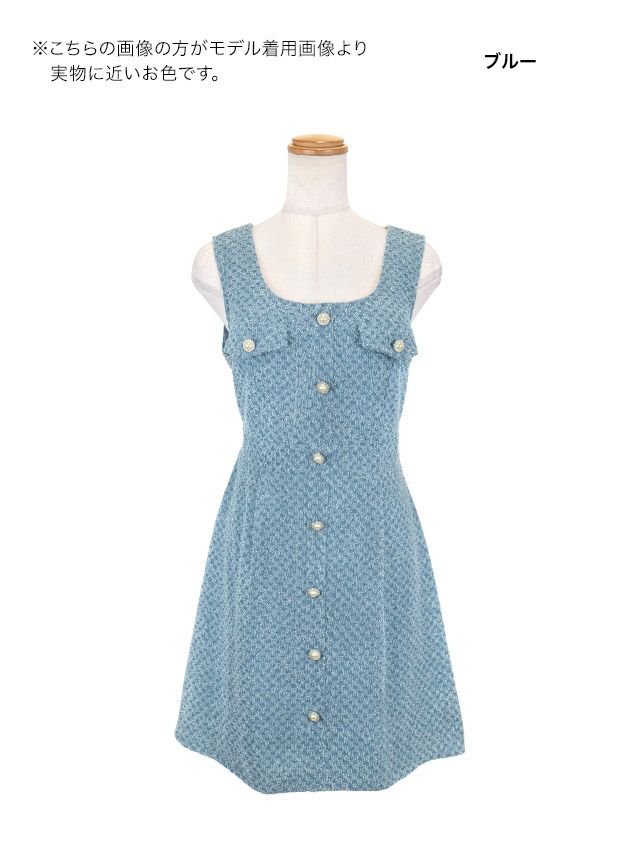 ワンピース Aライン ミニドレス ノースリーブ ブラジャーのまま デニム フロントボタン キャバドレスのカラーバリエーション