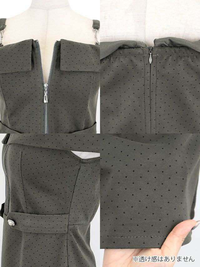 ワンピース Aライン ミニドレス ジップ 大人 ドット柄 肩出し ウエストベルト キャバドレスの商品特徴1