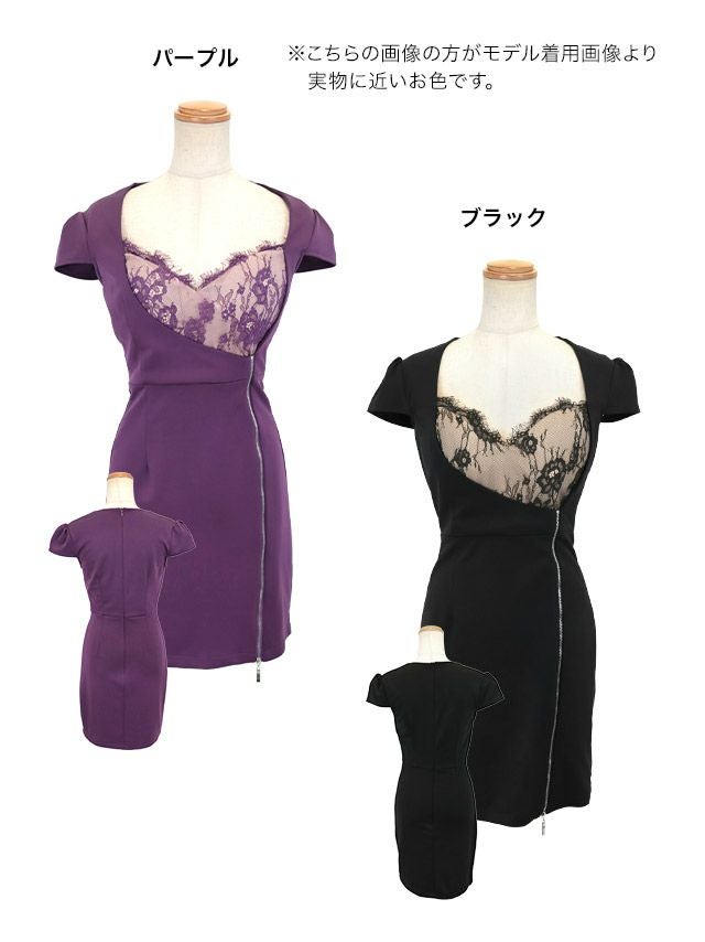 ハートカットスカラップフラワーレース切り替え半袖ジップタイトミニドレスのカラーバリエーション