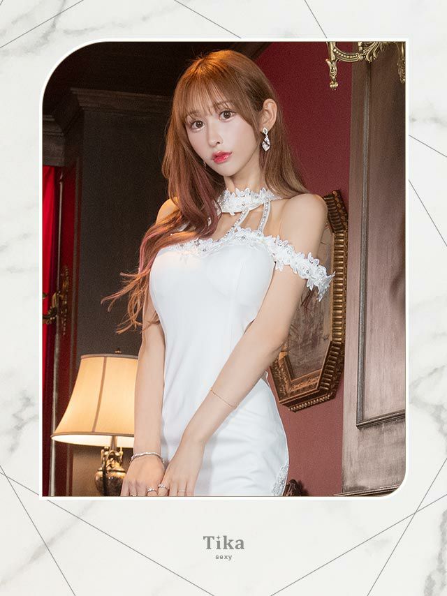 肩あきデコルテビジューコードチョーカーネックくびれタイトミニドレスの商品詳細1