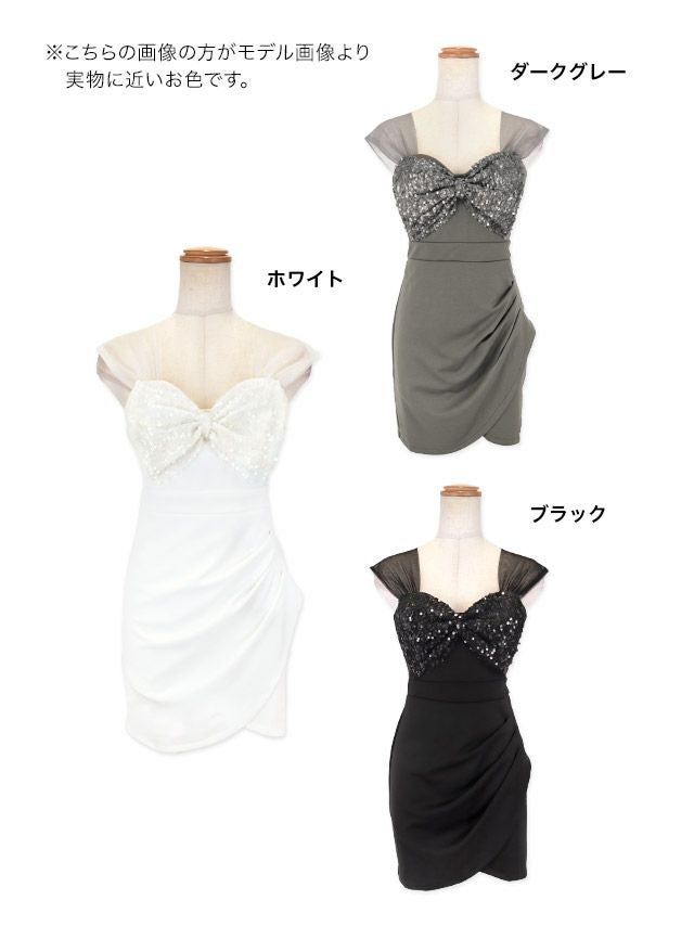 チュールキャミソールバストスパンコールリボンラップタイトミニドレスのカラーバリエーション