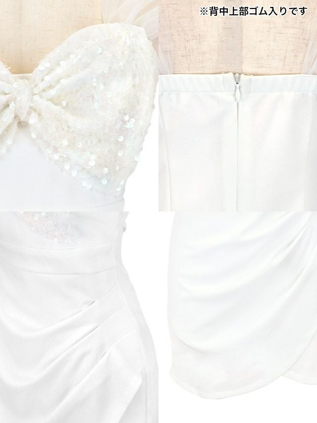 チュールキャミソールバストスパンコールリボンラップタイトミニドレスの商品詳細1