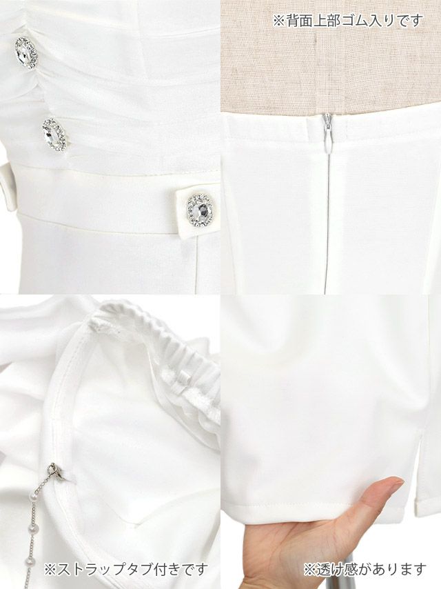 パールストラップ付き 肩あき オフショルダー ハートカット ウエストベルト ストレッチ スリット タイトミニドレスのカラーバリエーション