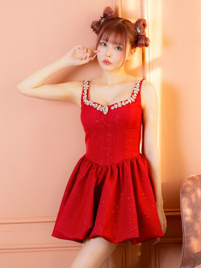 4. Aライン ミニドレス 谷間 キャミソール ビジュー バルーン キャバドレス (戦慄かなの着用)