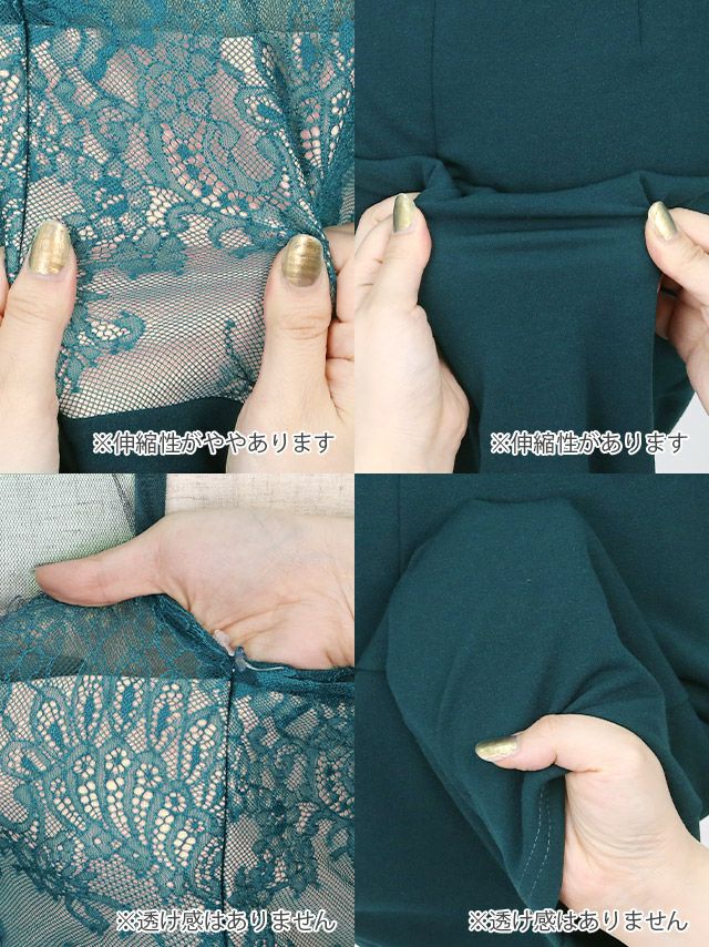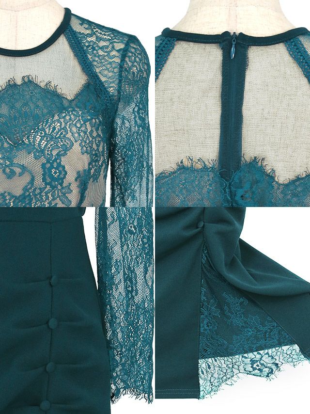 フラワーレーススリーブ袖あり膝丈スリットタイトドレスのカラーバリエーション