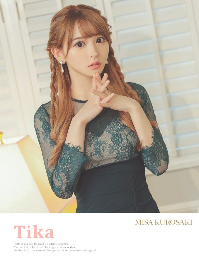 4. フラワーレース スリーブ 袖あり タイト膝丈ドレス (Sサイズ~XLサイズ) (黒崎みさ/キャバドレス着用)