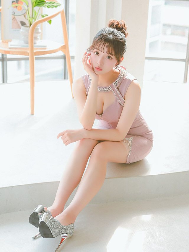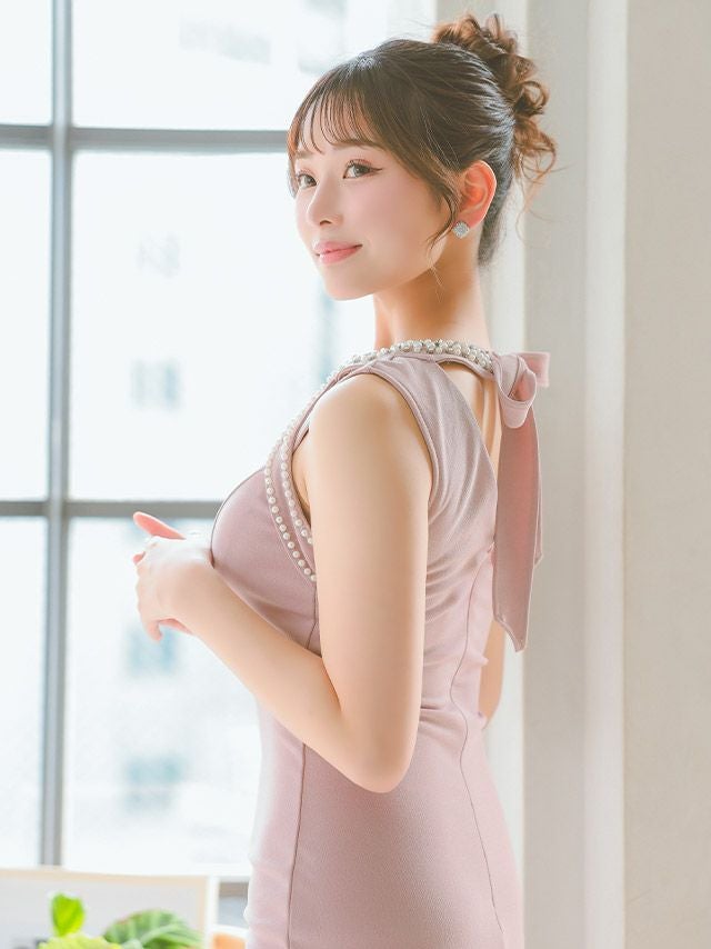 4. タイト ミニドレス 谷間 バストカット ジップ ノースリーブ パール ブラジャーのまま (上ノ堀結愛着用)